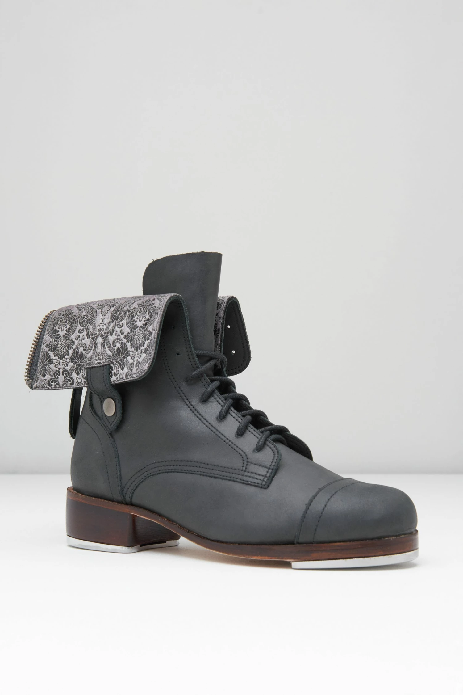 Our Adult City Tap Boots are both versatile and technical, with no compromise on performance or style.Β Tested and trialled by superstar tap duo Chloe & Maud, these boots haveΒ multiple styling options to enhance your performance while providingΒ industry leading tone and resonance. The key feature of this boot is the zipper rear which can be worn both up or down, in addition to its carefully placed elastic which secures the boot in hugging the arch of the foot, while providing full ankle flexibility. The Tap boots plush velour lining provides you with comfort whilst dancing, as well as adjustable laces which ensure that the tap boot remains secure on the foot.