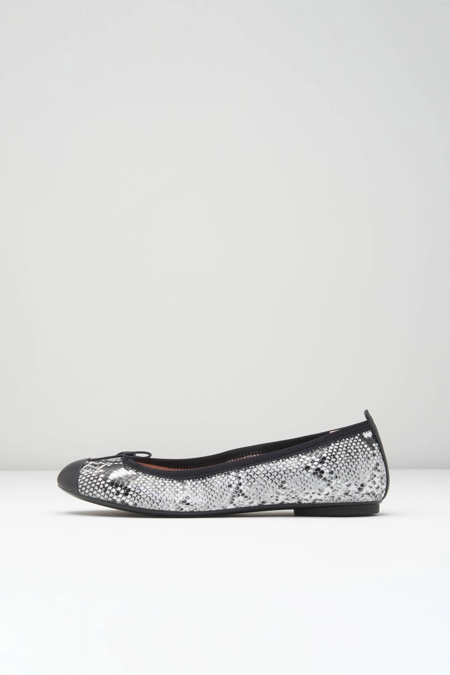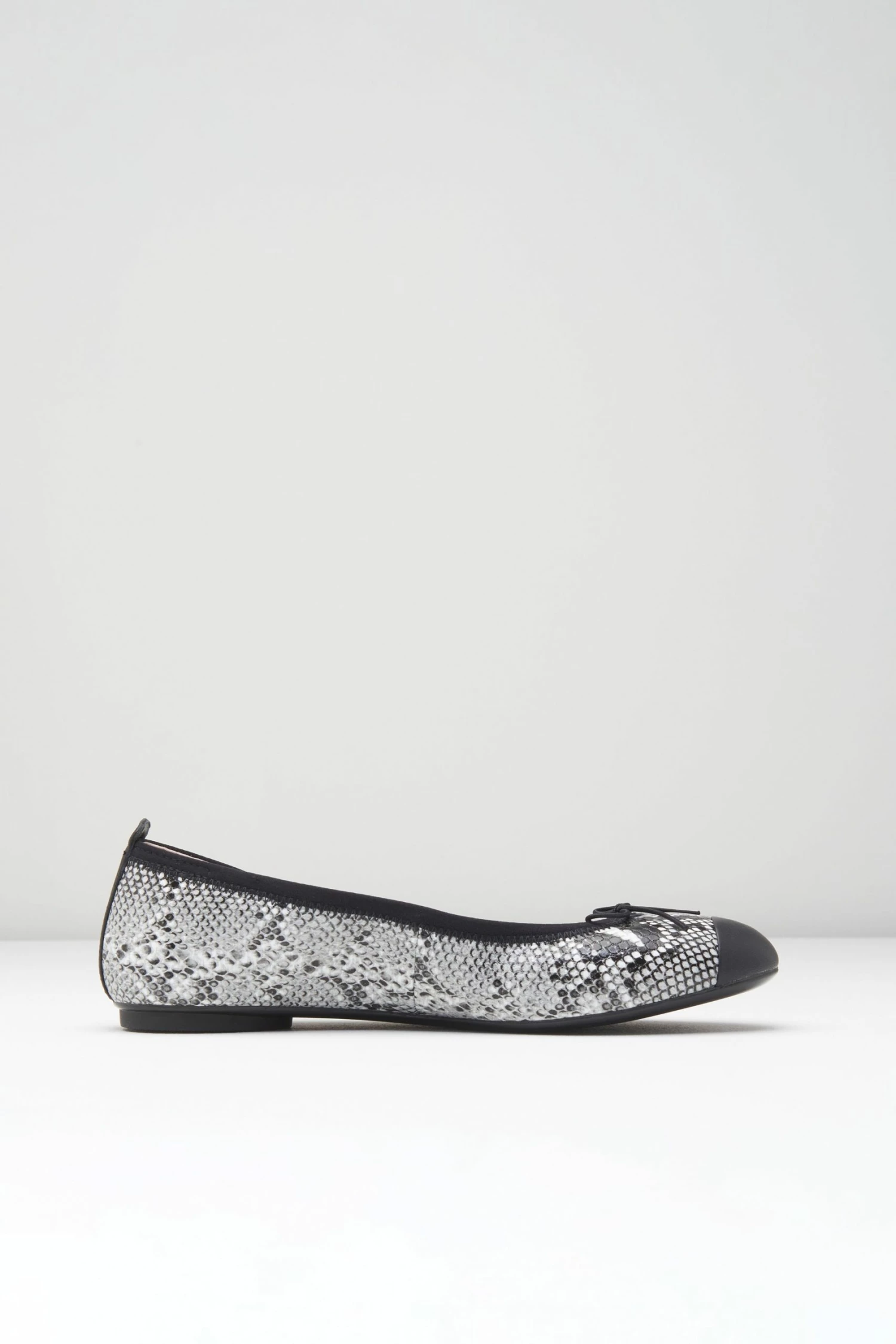 Our Ladies Astra Ballet Flats feature a classic two tone design with a sleek and sophisticated python print upper that has a luxurious texture and semi-gloss finish. Crafted for all day comfort, our Ballet Flats are the perfect shoe for on the go with its cushioned teardrop heel and elastic drawstring allowing for a customisable fit.