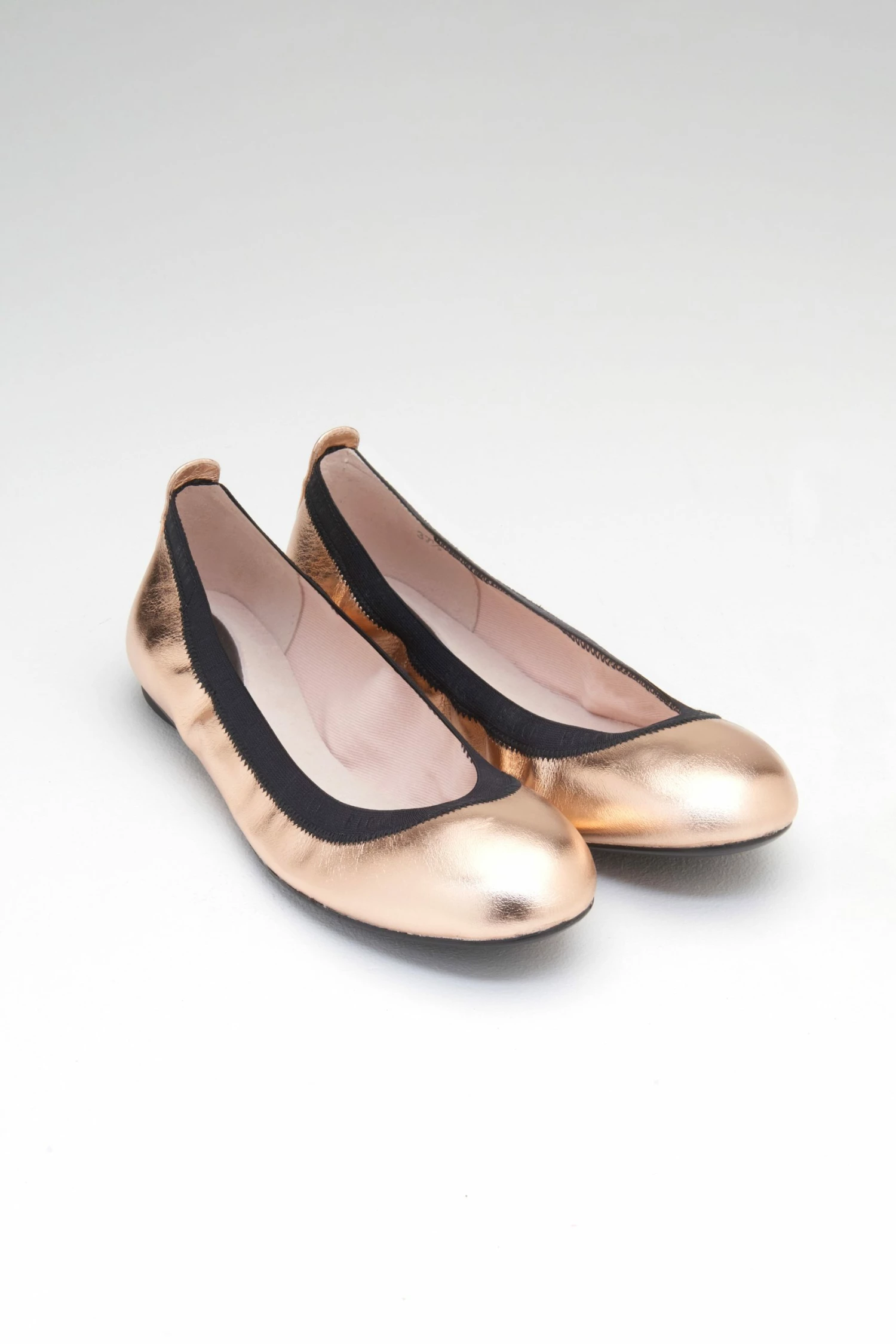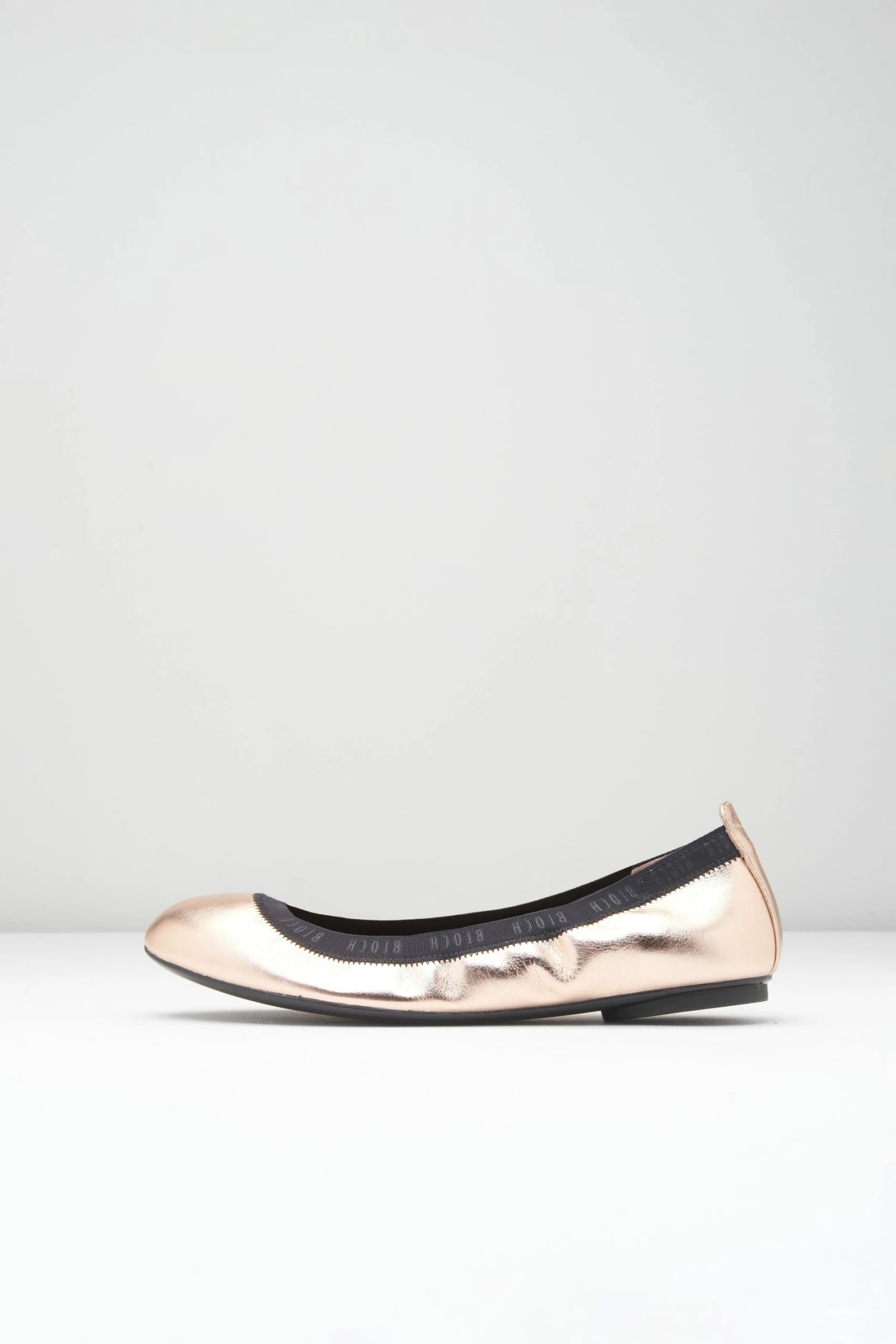 Our Ladies Carina Ballet Flats feature a traditional design with a leather upper creating a cool metallic finish. Crafted for all day comfort, our Ballet Flats are the perfect shoe for on the go with its cushioned teardrop heel and elasticated Bloch branded edging allowing for a perfect fit.