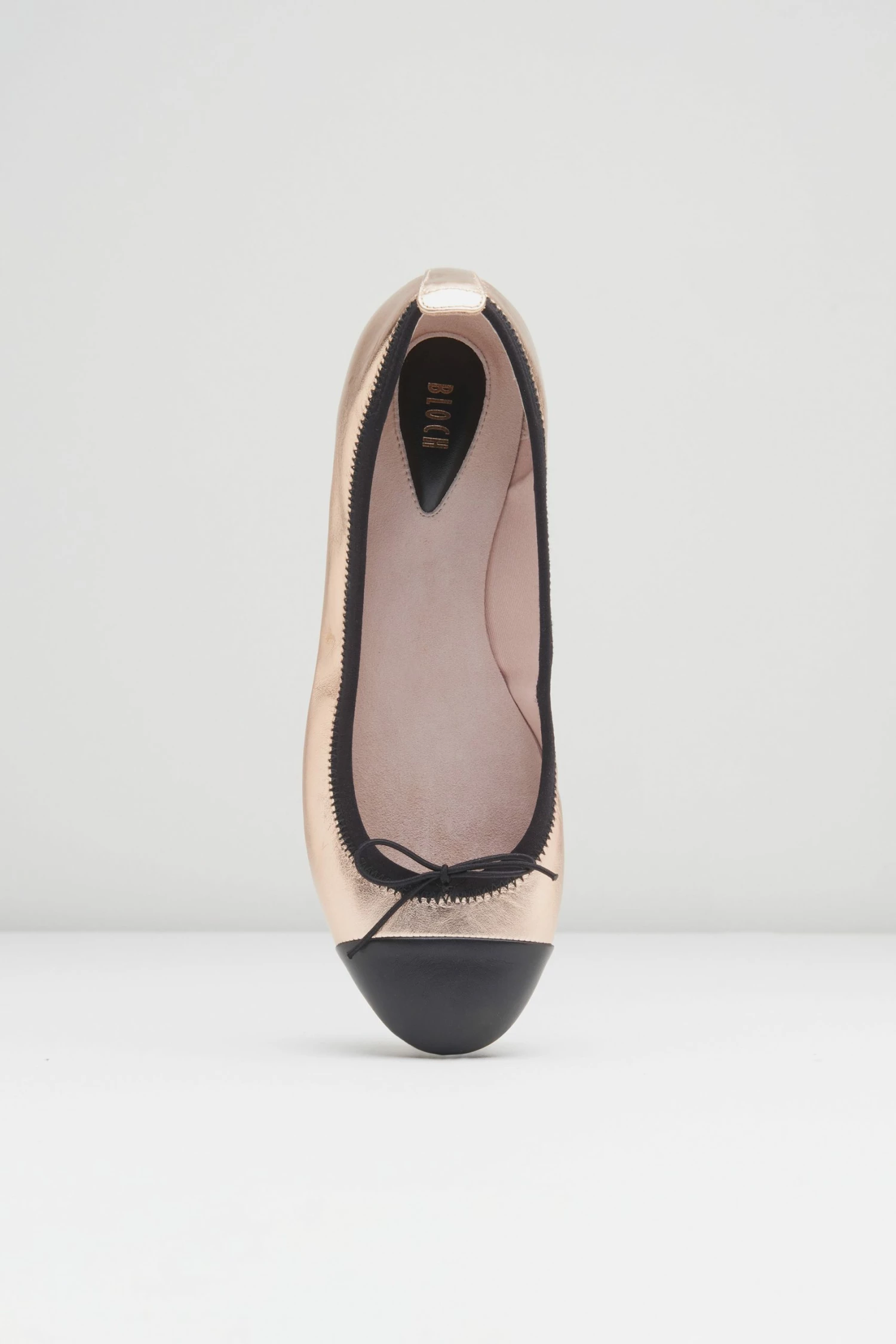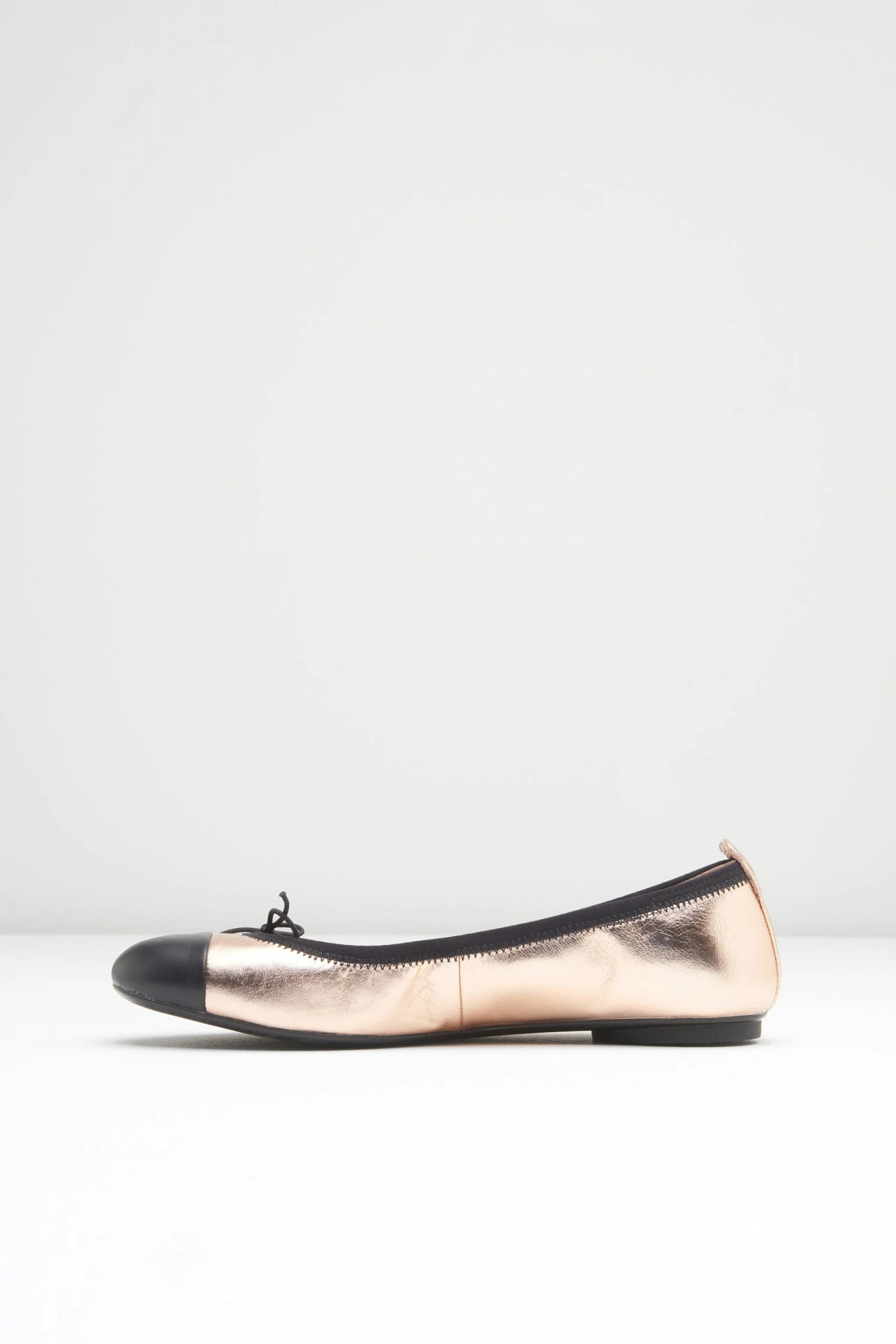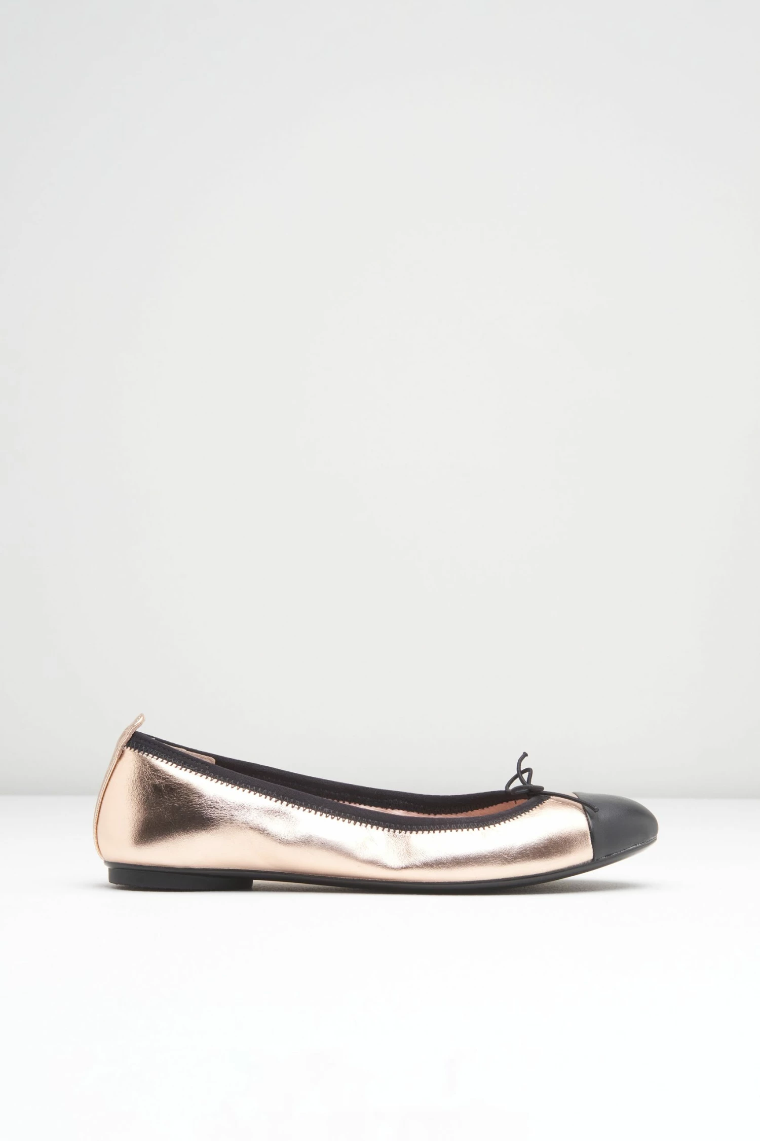 Our Ladies Chara Ballet Flats feature a traditional design with a leather upper creating a cool metallic finish. Crafted for all day comfort, our Ballet Flats are the perfect shoe for on the go with its cushioned teardrop heel and elastic drawstring allowing for a customisable fit.