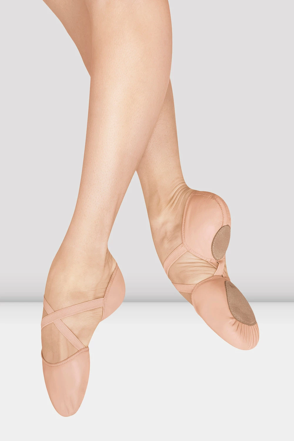 - The elastic system in the mid section of the shoe replaces materials in the mid-foot, to reveal the dancer’s arch and minimize bunching underfoot