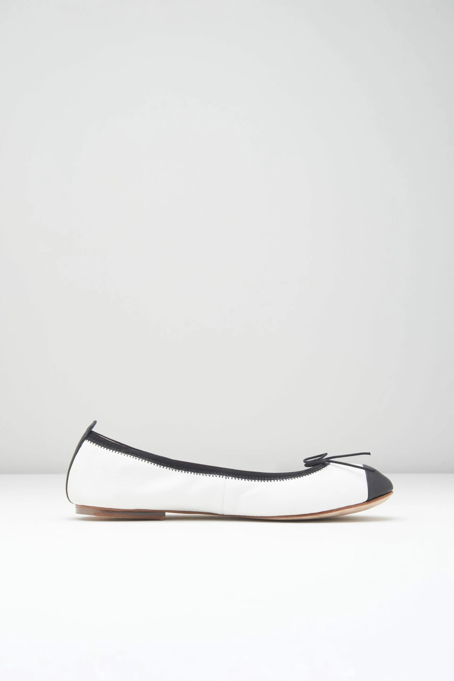 Deals โœจ BLOCHSTORE-US Ladies Rigel Ballet Flats White Black Leather ๐Ÿ’ฏ